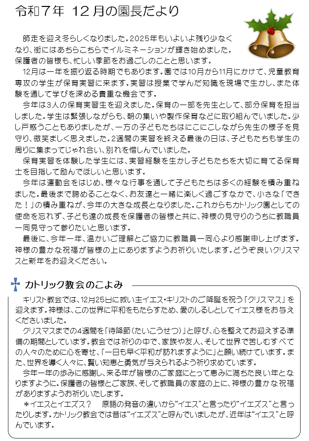 「園長だより」/令和7年12月
